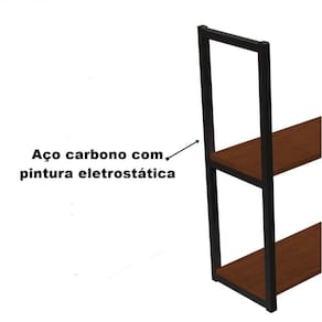 Características gerais: Cor: Suporte Preto e Prateleiras Avelã Local de instalação: Parede Peso: 4,43Kg Capacidade de carga por prateleira: 20 kg Material suporte: Aço carbono com pintura eletrostática Material prateleira: MDP Prateleiras pintadas com proteção UV