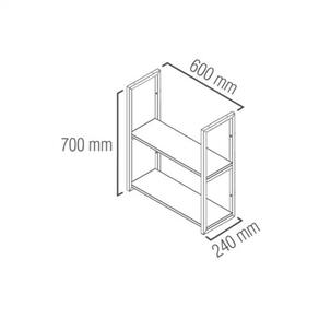 O kit acompanha 02 Prateleiras 60 x 20 x 1,50 cm 2 Suportes em Aço Parafusos e buchas Folha de instruções