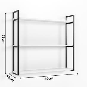 Prateleira Industrial 3 Níveis com Armação de Metalon Preto 75x18x80 MDF Amadeirado - Produto Automac Decor