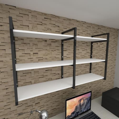 Prateleira estilo industrial para escritório aço cor preto prateleiras 30 cm cor branca modelo ind11bes . Medidas, Profundidade: 30 cm Altura: 68 cm . Profundidade Livre das badnejas: 25,80 cm. MDF utlizado de alta resistencia 15mm. Aço utilizado 20x20 0,90 com pintura eletrostatica epoxi, anti ferrugem. Incluso parafusos e buchas. Suporta até 20 kg por nivel