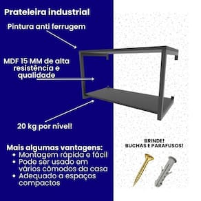 Material resistente: Aço e MdfDesign industrial eleganteAcabamento do aço em PretoSuporta até 20 kg por nivel