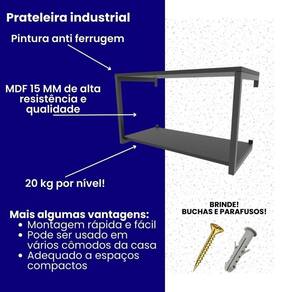 Material resistente: Aço e MdfDesign industrial eleganteAcabamento do aço em PretoSuporta até 20 kg por nivel