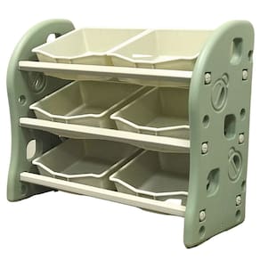 A prateleira organizadora de brinquedos é uma estrutura utilizada para manter todos esses itens em único lugar. Após a brincadeira, as crianças devem colocá-los nesse local, para evitar perder e deixar espalhado pela casa, possuindo 6 cestos grandes removíveis, modelo simples e de fácil acesso, facilitando a limpeza e organização.