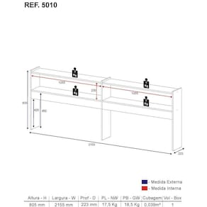 Prateleira Lateral Multimóveis para Cama / Bicama Branca REF.5010 - Branco