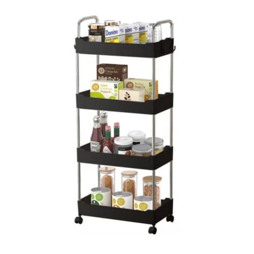 BenefíciosFacilita a organização de objetos em diferentes ambientes.Design moderno que agrega beleza ao espaço.Fácil montagem, sem necessidade de ferramentas complexas.Rodízios que giram 360 para maior mobilidade.Material durável e resistente, garantindo longa vida útil.Informações TécnicasMaterial: Plástico PP Cinza e hastes de aço inox.Cor: Cinza com hastes e alças em inox e rodas pretas.Altura: 89 cm.Largura: 22 cm.Comprimento: 40 cm.