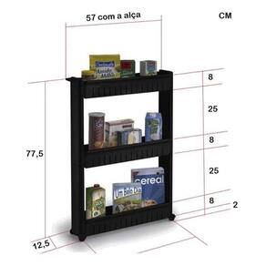 Lançamento na cor PretaA Prateleira Multiuso com Rodízio Arthi é muito versátil e pode ser usada para organizar qualquer cantinho em sua casa ou negócio. A combinação e alças na parte superior com os rodízios proporcionam facilidade para movimentar a prateleiraAs 3 prateleiras permitem melhor organização dos itens acomodados. Fácil de montar, fácil de limpar e super resistenteIdeal para- Banheiro- Cozinha- Área de serviço- EscritórioEspecificações técnicas- Modelo: Prateleira Multiuso com Rodízio- Marca: Arthi- Dimensões do produto montado AxLxP cm : 77,5 x 12,5 x 54,5- Material: PlásticoConteúdo da embalagem- 1 Prateleira Multiuso com Rodízio