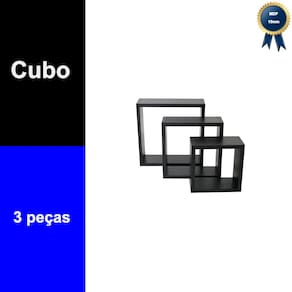 Prateleira Nicho Cubo Quadrado MDP 15mm 3 Peças - Preto