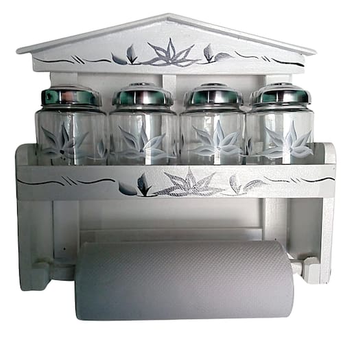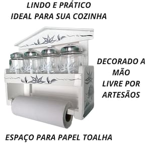 Porta tempero artesanal casinha feito totalmente em modo artesanal com espaço para papel toalha O porta tempero contém 4 vidros de aproximadamente 220 ml cada, todos os vidros possui tampa feita em alumínio com trava para manter o aroma e qualidade de seus temperos. Produzido em madeira de (lei) ecologicamente correto.