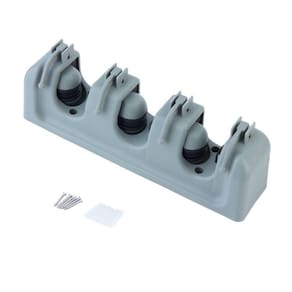 Este suporte multifuncional pode ser para pendurar artigos esportivos, ferramentas de hardware, ferramentas de limpeza, utensílios de cozinha, etc. Ótima opção com alça de fricção interna e gancho para outras finalidades. Material: plástico ABS (ecológico e durável, fácil de limpar) Cor: ciano e cinza 5 prateleiras (5 alças de fricção e 6 ganchos): aproximadamente 40x6cm Ver menos