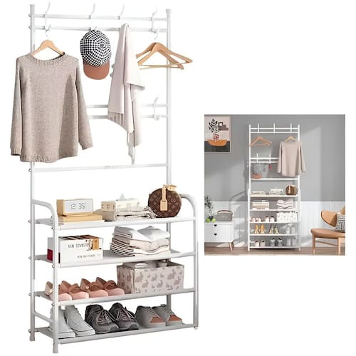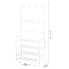 Prateleira Multifuncional 4 Andares – Organize com Praticidade e EstiloTransforme seus espaços com a Prateleira Multifuncional 4 Andares, uma solução inteligente que une praticidade, design moderno e funcionalidade em um único produto. Ideal para quem busca otimizar ambientes com elegância e organização, ela combina sapateira, cabideiro e prateleiras em um só móvel compacto e eficiente. Seja no quarto, no hall de entrada, no closet ou até mesmo em áreas de serviço, essa prateleira é perfeita para manter tudo em ordem com fácil acesso e visual limpo.Com estrutura robusta e bem planejada, essa prateleira é capaz de acomodar até 12 pares de sapatos, além de roupas, bolsas, mochilas, acessórios e diversos itens do dia a dia. Sua construção vertical foi pensada para aproveitar ao máximo espaços pequenos, tornando-se uma excelente opção para apartamentos, kitnets ou qualquer ambiente onde organização e economia de espaço são essenciais.O cabideiro integrado facilita o armazenamento de casacos, jaquetas, lenços ou bolsas, mantendo tudo visível e ao seu alcance. As prateleiras abertas oferecem ventilação ideal para calçados e acessórios, contribuindo para a conservação dos itens e proporcionando um visual clean e agradável. A tonalidade branca confere um toque neutro e versátil, combinando com diferentes estilos de decoração, do minimalista ao contemporâneo.Diferenciais do Produto:Design multifuncional: sapateira, cabideiro e prateleiras em um único móvel.Estrutura compacta com 4 andares: aproveitamento vertical do espaço.Capacidade para até 12 pares de sapatos.Suporta até 35kg distribuídos uniformemente.Prateleiras arejadas para melhor conservação dos calçados.Ideal para quartos, corredores, lavabos, áreas de serviço e closets.Estilo moderno com acabamento branco que harmoniza com diversos ambientes.Fácil de montar, leve e prática para deslocar quando necessário.Especificações Técnicas:Modelo: Prateleira Multifuncional 4 AndaresCor: BrancoAltura: 152 cmComprimento: 60 cmLargura: 25,5 cmMaterial: Estrutura resistente com acabamento de qualidadeCapacidade: Até 12 pares de sapatosPeso suportado: até 35 kg distribuídosFinalidade: Organização de calçados, roupas, bolsas e acessóriosConteúdo da Embalagem:01x Prateleira Multifuncional 4 AndaresManual de instruções para montagemVersatilidade e Eficiência para o Seu Dia a DiaA Prateleira Multifuncional é a escolha ideal para quem deseja unir organização, funcionalidade e aproveitamento de espaço em um único item. Tenha tudo o que precisa em um só lugar com acesso prático, deixando seus ambientes mais arrumados, agradáveis e funcionais. Perfeita para facilitar sua rotina com elegância e simplicidade.Garantia de 3 Meses:Este produto conta com garantia de 3 meses contra defeitos de fabricação, oferecendo mais segurança e tranquilidade para você. A garantia é válida mediante apresentação da procedência garantida e observação das condições de uso recomendadas no manual.Mantenha seu ambiente sempre organizado e com estilo. Aproveite agora mesmo para adquirir a sua Prateleira Multifuncional 4 Andares!