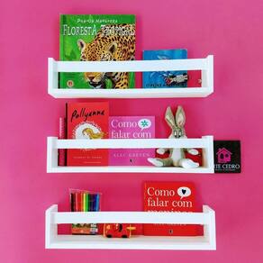 Prateleira para colocar livros e brinquedos infantis nicho mdf branco para sala de leitura 3pçs 55 cm nichos enviados montados para você. Garantia de acabamento perfeito qualidade comprovada por nossos clientes. Fabricação própria da arte cedro. O que vem:
