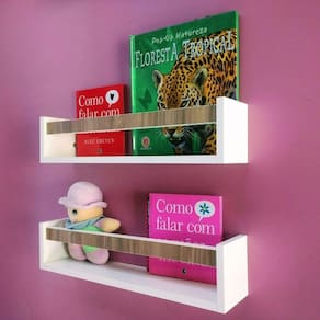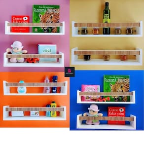 _ Kit com 2 prateleiras para livros, brinquedos, itens de cozinha, banheiro etc. (detalhe: branca ripa madeira)