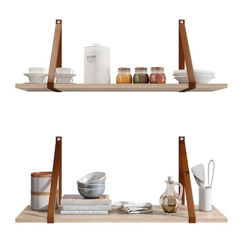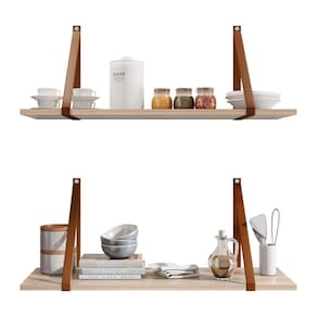 Adquira agora o Kit 2 Prateleiras Parede Madeira 90x30cm Alça Couro e tenha um ambiente organizado e decorado com muito estilo e praticidade.