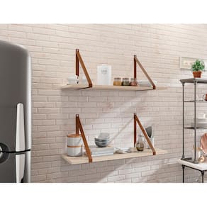 O Kit 2 Prateleiras Parede Madeira 90x30cm Alça Couro não necessita de montagem, sendo muito fácil de instalar. Para a limpeza, basta utilizar um pano úmido, garantindo a durabilidade e beleza das prateleiras.