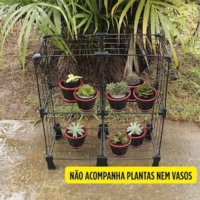 A estante aramada é ideal para vasos de suculentas e cactos pequenos, além de objetos de decoração como porta retratos e velas. Além disso, pode ser usada no banheiro para organizar produtos de higiene pessoal e toalhas e no quarto para guardar seus livros e outros objetos.