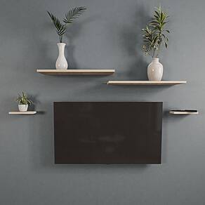 Composto por 2 prateleiras de 19x60cm e 2 prateleiras de 09x20cm, esse rack oferece espaço suficiente para acomodar objetos decorativos, livros, eletrônicos e muito mais. Além disso, o rack conta com suportes invisíveis, buchas e parafusos para facilitar a instalação.