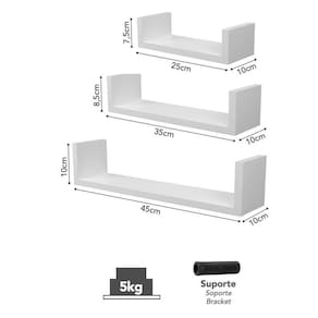 Prateleira U Prat-K Decorare Preto - Kit 3 Peças Kit Prateleiras U Decorare da Prat-K, 3 prateleiras com um formato moderno e tamanhos distintos, decorando com a variação de tamanhos. A prateleira U Decorare da Prat-K é uma prateleira pequena, versátil e decorativa, que traz organização e beleza aos mais variados ambientes da casa, ótimas para sala de estar, quartos, cozinha, corredores, escritório, lavabo. A prateleira U Decorare é excelente para locais pequenos e estreitos, como corredores e lavabos, decorando e organizando ao mesmo tempo Deixando o ambiente moderno e arrojado. O KIT Prateleira U Decorare preta com suporte embutido, possui 3 tamanhos distintos para cada prateleira, 7,5x25cm| 8,5x35cm| 10x45cm e 10cm de profundidade. Marca Prat-K Cor: Preto Material: MDP Acompanha: Suporte, buchas e parafusos Capacidade de Peso: 5Kg Limpeza: Pano úmido Garantia: 3 meses Instalação simples e rápida. Ean: 7899796807824