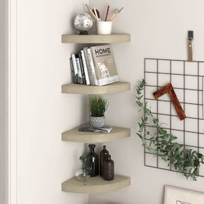Este conjunto de 4 prateleiras de canto elegantes é ideal para exibir seus livros favoritos, decorações, fotos, prêmios, etc.