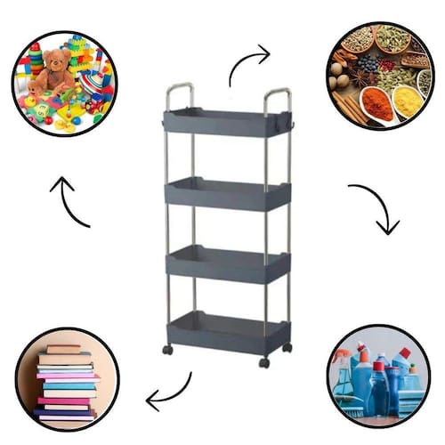 A Prateleira Carrinho Em Aço Organizador Multiuso 4 Prateleira é fácil de montar e desmontar, permitindo que você a transporte e a utilize onde precisar. Sua estrutura resistente suporta o peso dos itens organizados, garantindo durabilidade e segurança.