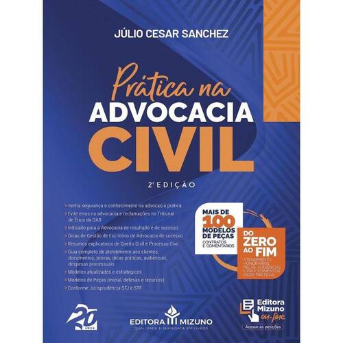 A Prática Jurídica Civil é fundamental na carreira de qualquer operador do direito. O livro ajuda na formulação de peças e outras práticas da carreira jurídica. A Prática Jurídica Civil é essencial para quem sonha em conquistar sucesso na advocacia. A atualização é de extrema importância para o advogado conhecer o que há de novo em seu segmento de atuação. Essa obra oferece ao leitor a tão necessária prática. O objetivo do professor Júlio Cesar Sanchez que vos escreve é oferecer capacitação específica para assuntos pontuais, o que é excelente para acompanhar as novidades na sua área. Além disso, a prática jurídica é geralmente exigida como pré-requisito nos principais concursos jurídicos. Se você é um advogado ou advogada iniciante na carreira e não se sente preparado para advogar, não se desespere! Essa é uma sensação bem comum entre bacharéis. A prática jurídica é parte fundamental na carreira de qualquer operador do Direito, mas a formulação de peças e outras práticas podem ser um calo para aqueles estudantes ou profissionais que vivem presos às teorias. Por isso, esse livro de prática jurídica é indispensável. Com esse material você coloca em prática todo o conteúdo aprendido nos anos de faculdade. Nessa obra você encontra a habilidade necessária para alavancar sua vida no ramo Jurídico. O curso de prática jurídica tem como propósito abordar a visão prático-profissional sobre os principais temas aplicados no dia a dia de cada área. Isto é, trazendo modelo de peças processuais e apresentando, de forma didática, inúmeras situações que devem ser enfrentadas pelo profissional no exercício de sua profissão. O curso é fundamental para aqueles que estão ingressando no mercado profissional e para aqueles profissionais que buscam uma atualização e aperfeiçoamento de seus conhecimentos em uma área especializada do Direito. Além disso, o conteúdo das aulas destina-se também àqueles que se submeterão a concursos públicos, os quais exigem o conhecimento prático do Direito. A obra conta com dicas de gestão de escritório e muitas outras! Boa leitura! Esse é o seu manual de consulta! Forte abraço do Professor Júlio César Sanchez.