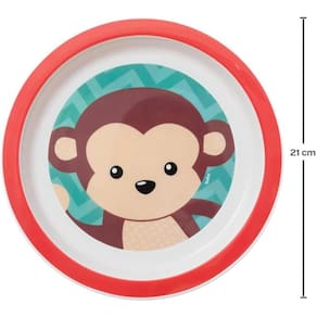 Pratinho de Bebê Animal Fun Buba Colorido 21cm Estampa Macaquinho Prato Infantil Redondo.