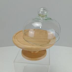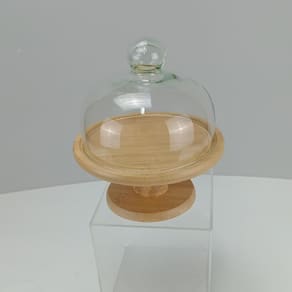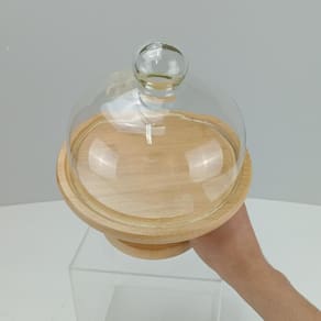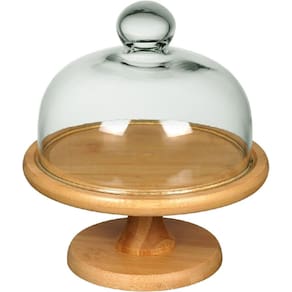 PRATO BOLO BOLEIRA REDONDO HOME&CO TAMPA VIDRO BAMBU 18x20x20cm