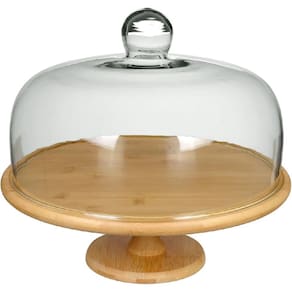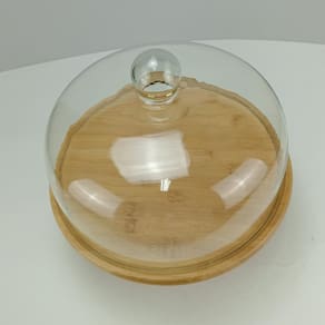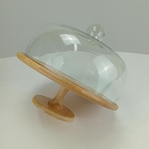 PRATO BOLO Altura: 28,5 cm Largura: 32,2 cm Profundidade: 32,2 cm Peso: 1,92 Kg Diâmetro da Base: 14 cm Material: Vidro Cor: Transparente