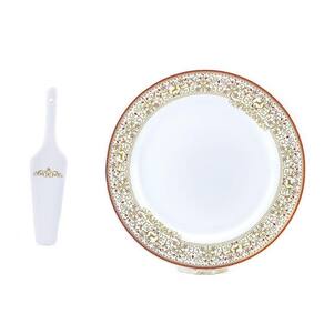 O prato para bolo é sofisticado e delicado, em porcelana e com detalhes flor, ele garantirá todo o charme que a sua mesa merece. Acompanhado de uma espátula tão bela quanto o prato, ele é ideal para você servir os seus convidados com muita elegância e requinte