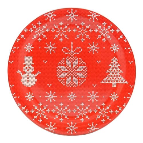 Prato Bolo Vermelho Trico Peças inspiradas em tecido de trico que traz a magia do Natal de abraços calorosos e memórias duradouras. O trico remete ao trabalho manual que pode trazer esta magia de amor, carinho e ao redor da mesa para contemplar esta data tão linda ao lado de quem tanto amamos. Proporcione este momento mágico.Prato bolo de vidro, vermelho, estampada. Pode ser levada ao microondas, lava louça. Não recomedado levar ao forno. 29,5 x A. 2 NA Marca: Dela Home