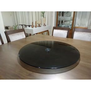 Prato Giratório de Vidro Temperado Cor: Fumê Vidro Temperado, 5x mais resistente. Altura: 3,5 cm Espessura: 8 mm Sistema Giratório em Alumínio Polido. Vidro da base: 25 cm diâmetro e 6 mm espessura Silicone na base para garantir estabilidade ao prato sobre a mesa. Montagem: Produto montado de Fábrica. Decore sua Mesa de Jantar, além de proporcionar conforto e comodidade nas refeições Há vários anos no Mercado, de fabricação própria, garantimos um Produto Diferenciado, com Ótimo Acabamento. Enviamos com Isopor, Caixa, embalado e pronto para presentear Marca: Não Informado Ean: 7898658091555