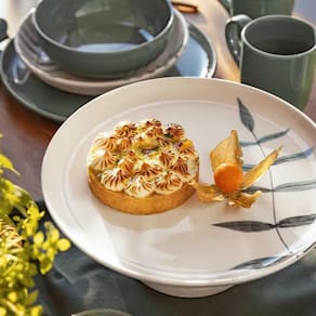 Prato Com Pé Em Cerâmica Flat 26,5x10cm Oxford Samambaia -
