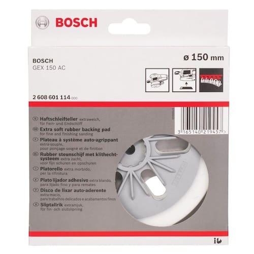 Prato de Borracha Para Lixadeira 150MM 2608601114 Bosch Características da Ferramenta: São adequados para utilizar com lixadeiras excêntricas Bosch. Os suportes de lixa para lixadeiras excêntricas destinam-se ao polimento de tinta, material de enchimento e estuque. imagem Meramente Ilustrativa Dados Técnicos: Referência: 2608601114 Acompanha: 1un. Prato de Borracha Para Lixadeira 150MM 2608601114 Bosch 90 dias fornecido pelo fabricante. Especificações: Código: 156544 Modelo: 2608601114 Código EAN: 3165140219457 Ean: 3165140219457