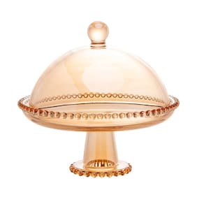 O PRATO COM PÉ E TAMPA PEARL WOLFF FEITO EM CRISTAL, COM LAPIDAÇÃO EM BOLINHAS NA BORDA QUE REMETEM A PÉROLAS, É IDEAL PARA ACOMODAR BOLOS E TORTAS DOCES, DURANTE O SERVIÇO DE MESA. O CRISTAL CONFERE BRILHO E CHARME A ESTE PRODUTO.