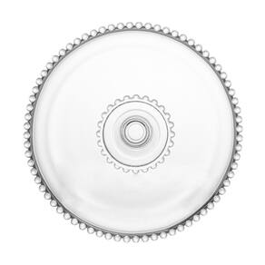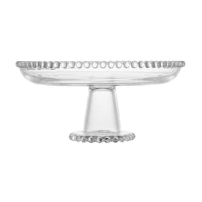 Prato de Cristal C/Pé para Bolo/Doces Pearl Bolinha Transparente 20x9cm Wolff