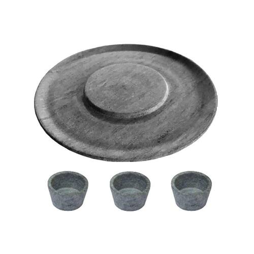 Prato de Hambúrguer Porções 26cm e 3 Molheiras Pedra Sabão