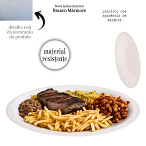 Este produto da nova linha marmorizada traz um toque peculiar, estiloso e moderno aos seus utensílios de servir. O prato tem 26cm de diâmetro. O produto é fabricado em polipropileno atóxico de alta densidade, totalmente seguro para a alimentação e livre de BPA em sua composição. A decoração no fundo do produto é permanente devido à tecnologia aplicada em sua fabricação, que não permite desbotamento e mantém os detalhes marmorizados vivos por mais tempo. O prato, inclusive, pode ser levado com segurança tanto ao freezer como microondas, sem comprometimento da integridade do material e tampouco da saúde de quem nele se serve. O produto suporta temperaturas extremas variantes entre -10º e 120º, embora não possa ser levado ao forno convencional.