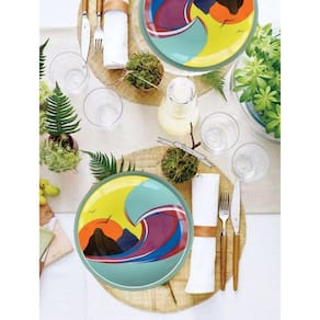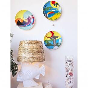 Criado pelo talentoso artista Tom Veiga, esta peça exibe cores vibrantes e um estilo inspirado nas maravilhas do mar. Cada traço desta arte cuidadosamente elaborada captura a essência das ondas transmitindo toda a energia e movimento do oceano. As nuances brilhantes de cores vivas retratam a força e a serenidade das águas, trazendo uma sensação de calma e fascínio ao mesmo tempo. Além de ser uma peça de decoração encantadora, este prato também é altamente funcional.