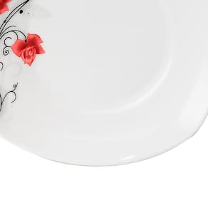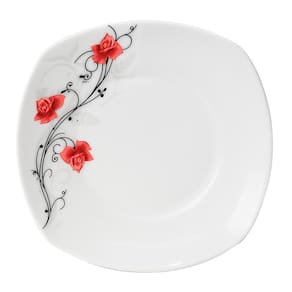 O Prato Rosas segue a nova tendência e traz formato quadrado com bordas arredondadas que aposta na autenticidade e no contraste de cores, trazendo à sua mesa mais charme e sofisticação nos momentos de suas refeições. É produzido em porcelana de altíssima qualidade na cor branco com floral vermelho que traz uma sensação de leveza a sua mesa.