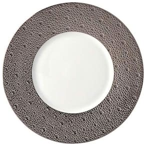 Material Porcelana de Limoges Cor Branco e Cinza Característica especial: Feito à mão Forma: Redondo Número de peças 1 Tamanho: 21,6 cm Modelo: Ecume Platinum Marca: Não Informado