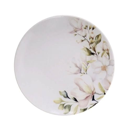 Prato de Sobremesa Branco 21cm Porcelana Decorada Avulso Tramontina Magnólia.