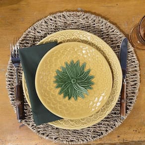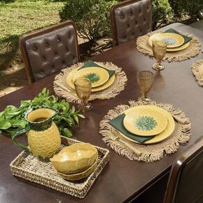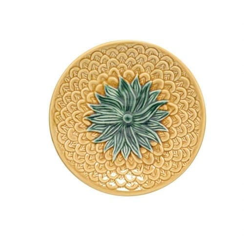 Prato De Sobremesa Copa E Cia Versailles Abacaxi Em Cerâmica Artesanal Prato de Sobremesa Copa e Cia Versailles Abacaxi em Cerâmica Artesanal - Características Gerais do Produto: - Composição: 100% Cerâmica. - Detalhes: Produzido na Índia.; Peça Vendida de Forma Avulsa (Individual).; Pintadas a mão e texturizadas. - Cuidados: Não Utilizar Solventes ou Abrasivos.; Lavar com Detergente Neutro e Esponja Macia.; Não Deixar de Molho. - Dimensões (cm): Diâmetro: 21 cm Acompanha o produto: - 1 Peça de Prato de Sobremesa Garantia: - Sem Garantia