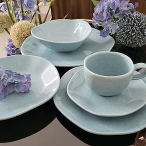 O Prato Porcelana Sobremesa Rústico Decorado 21,5Cm Oxford possui uma cor azul claro monocromático, trazendo um toque de delicadeza à mesa.