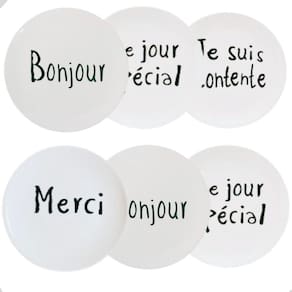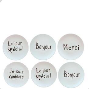 Composição: 6un de Pratos com 20cm de diãmetro e escritas diferentes.