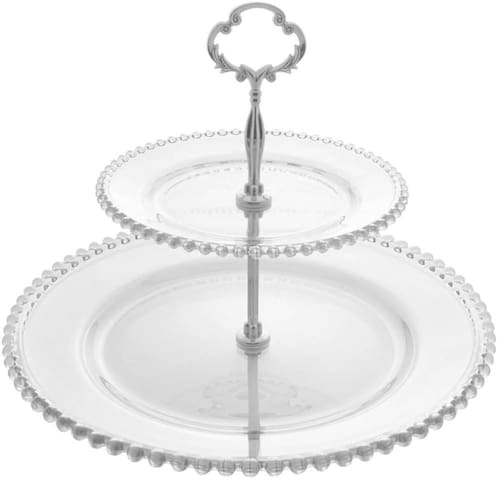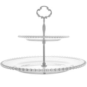 Prato Duplo Wolff Pearl de Cristal 2 Andares Porta Doces 32cm Cupcake Petiscos Incolor.