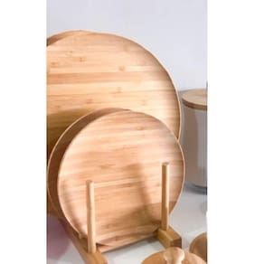 Todo feito em bambu que, além de ser ecologicamente correto, não propaga bactérias. É versátil e seu tamanho é ideal para servir sobremesas ou petiscos, queijos e frios em geral.
