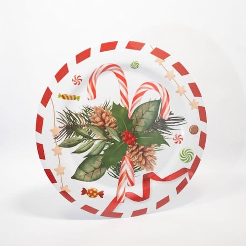Prato Para Bolo em Melamina 35cmA melamina, conhecida por sua durabilidade e resistência a quebras, torna este prato ideal para reuniões familiares, onde a agitação e alegria podem, por vezes, resultar em pequenos acidentes. Além disso, sua superfície lisa e brilhante é fácil de limpar, garantindo que o prato mantenha sua aparência vibrante e festiva ao longo de muitas celebrações natalinas.