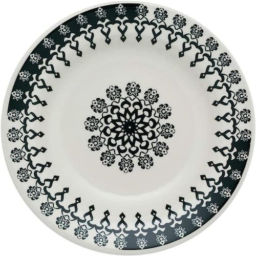 A cor preta é básica e neutra, um verdadeiro curinga na hora de montar a mesa. Nessa louça, colocamos a cor preta numa estampa mais alegre e jovial, perfeita para quem prefere um formato de pratos tradicional com uma decoração mais alegre. O prato fundo da coleção é perfeito para servir cremes e sopas.