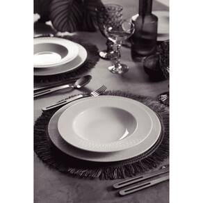 Prato Fundo Tramontina Santorini em Porcelana - 23 cm O Prato Fundo Tramontina Santorini é ideal para servir sopas, caldos, massas e preparações com molhos, unindo funcionalidade e sofisticação. Produzido em porcelana de alta qualidade, seu design refinado e decoração discreta proporcionam elegância à mesa posta em qualquer ocasião. Características do produto: Diâmetro: 23 cm Material: Porcelana tradicional com acabamento vitrificado Design: Formato redondo com bordas suaves e decoração delicada em tons neutros, típica da linha Santorini Acabamento: Superfície lisa e brilhante, com toque fino e agradável Diferenciais: Porcelana com baixa porosidade, que impede a absorção de líquidos e odores Alta resistência mecânica, ideal para o uso diário Compatível com micro-ondas e lava-louças, oferecendo maior praticidade Peça versátil, adequada para refeições com caldos, massas ou entradas sofisticadas Cuidados recomendados: Lavar com esponja macia e sabão neutro Não utilizar em forno convencional ou sobre chama direta Evitar produtos abrasivos que possam danificar o acabamento da porcelana Marca: Não Informado