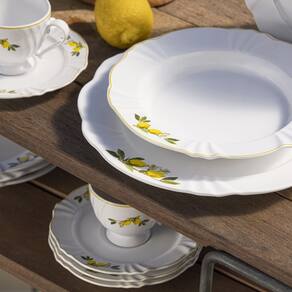 A história da porcelana está profundamente conectada à Itália. Foi na China durante a dinastia Tang que se tem registro da criação da primeira peça em porcelana. Porém, foi somente na Itália que o material se popularizou e ganhou nome. O limão siciliano é um tema comum nas cerâmicas e também na culinária italianas e na decoração Limoni é a estrela principal que resgata um pedaço história da porcelana. Nesta opção o prato fundo é vendido individualmente. ESPECIFICAÇÕES