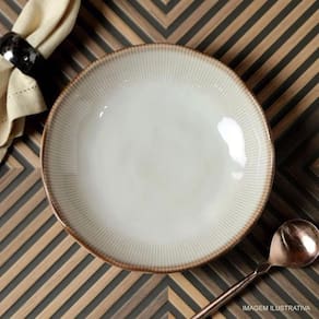 O Prato Fundo Bio Raio Porto Brasil combina um visual elegante com textura inspirada em elementos naturais, trazendo personalidade e charme para qualquer mesa. Com 22,5 cm de diâmetro, ele é perfeito para servir sopas, massas, risotos, caldos e pratos com molhos, oferecendo funcionalidade sem abrir mão da estética.